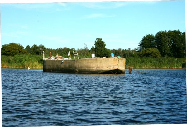Jeg sejlede med nordenden af fjorden og i sivkanten nord for fedhavnen fandt jeg så beton pram.