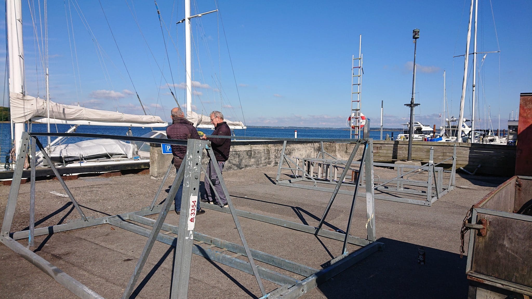 Vi hjælper hinanden med at tage master ned fra loftet og sætte dem på bådene - samt sætte stativer på... |