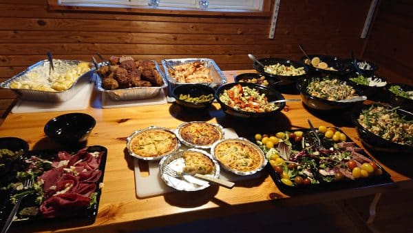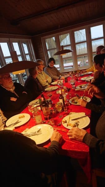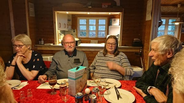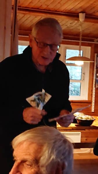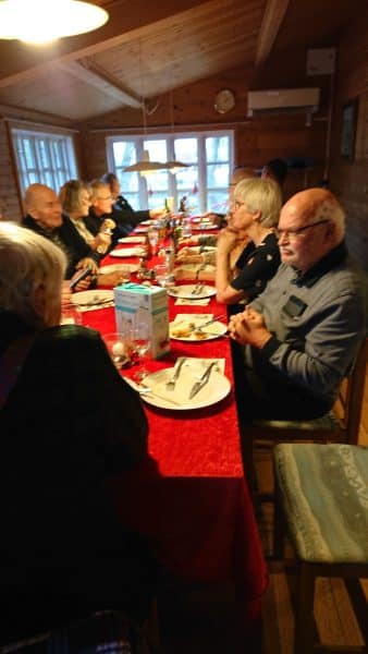 Hanne og Asger havde som altid lavet et fint arrangement med lækker mad. Undervejs underholdt Leif med en sang.