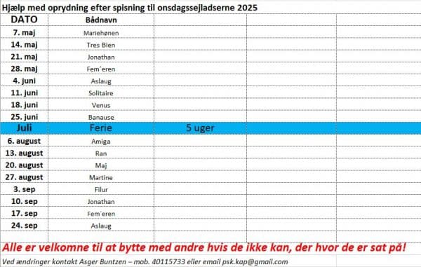 Kapsejladsudvalget arrangerer den ugentlige onsdagsmatch på Præstø Fjord, der afsluttes med spisning og hyggeligt samvær i Bådhallen overfor mastekranen