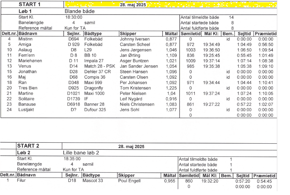 Resultater fra onsdagssejladserne 2025