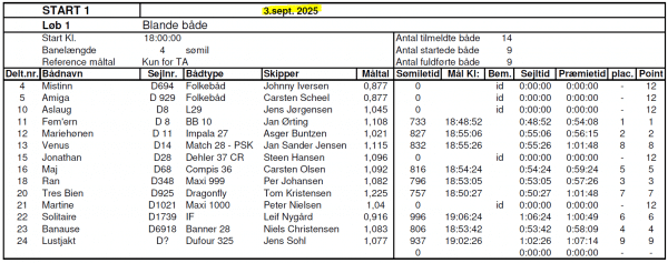 Husk at starten de sidste 3 gange i september er kl. 18.00.