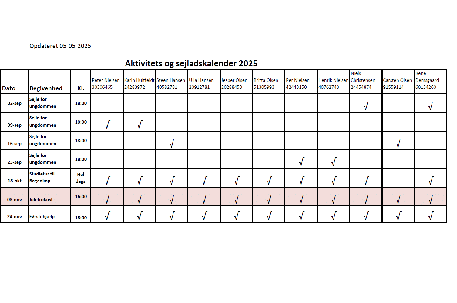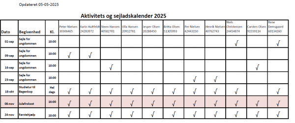 Trygjollen er bemandet med mindst 2 personer som er i besiddelse af førstehjælp/hjertestarter kursus, duelighedsbevis og VHF/DSC-certifikat.